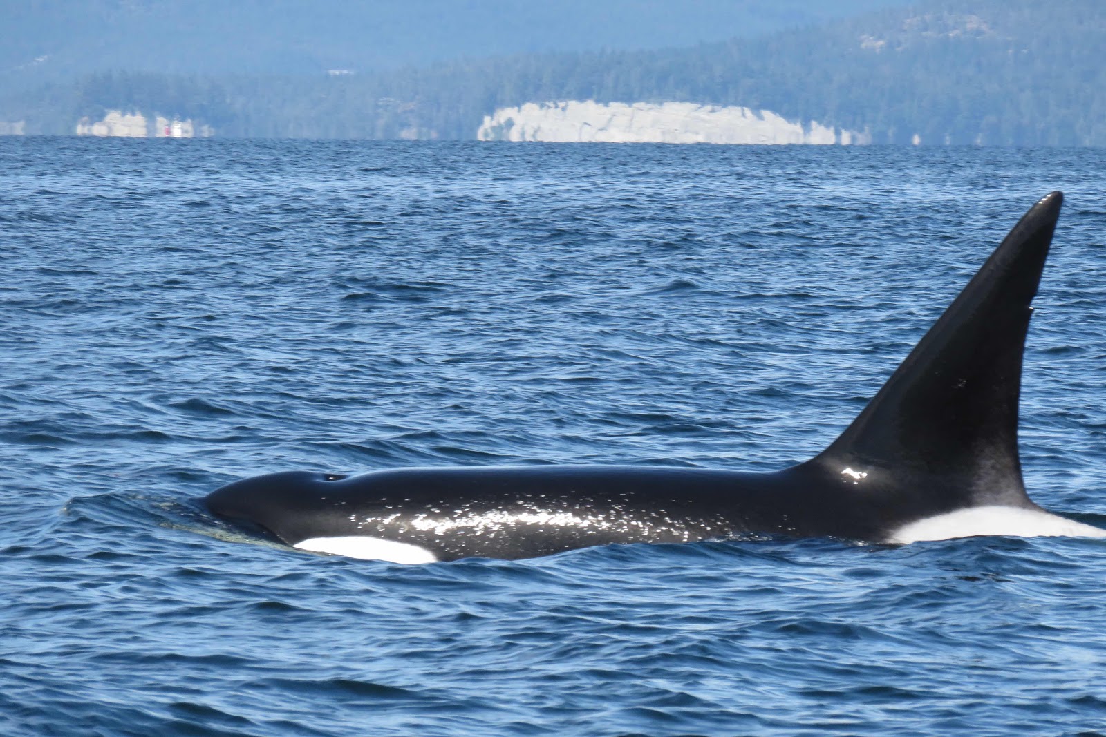 Strict laws regulate boat traffic. We are only allowed to remain in their company 1 hr 10 minutes and cannot approach within 100 yards. I was hoping to see an orca playfully leap out of the water, but no performances today.