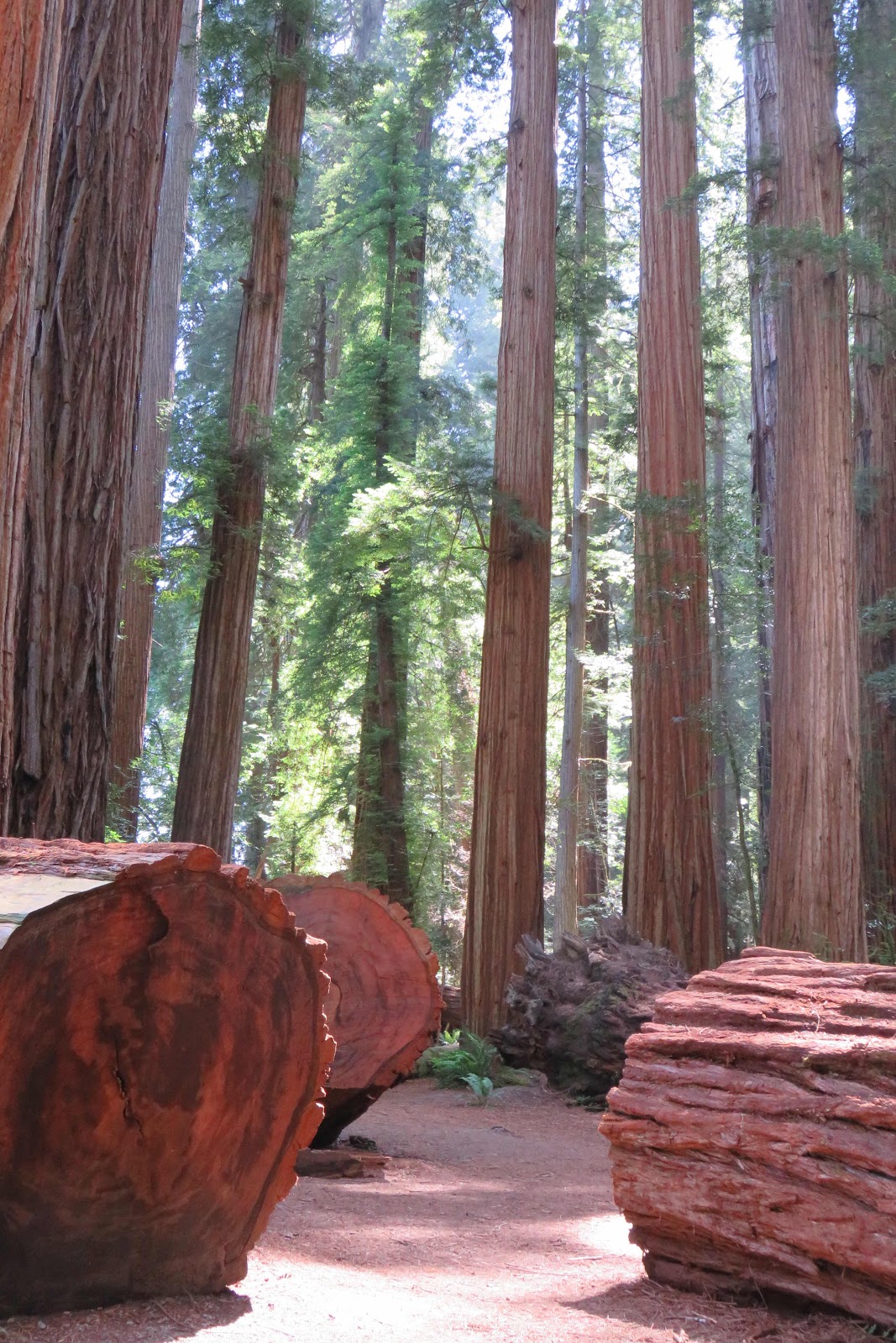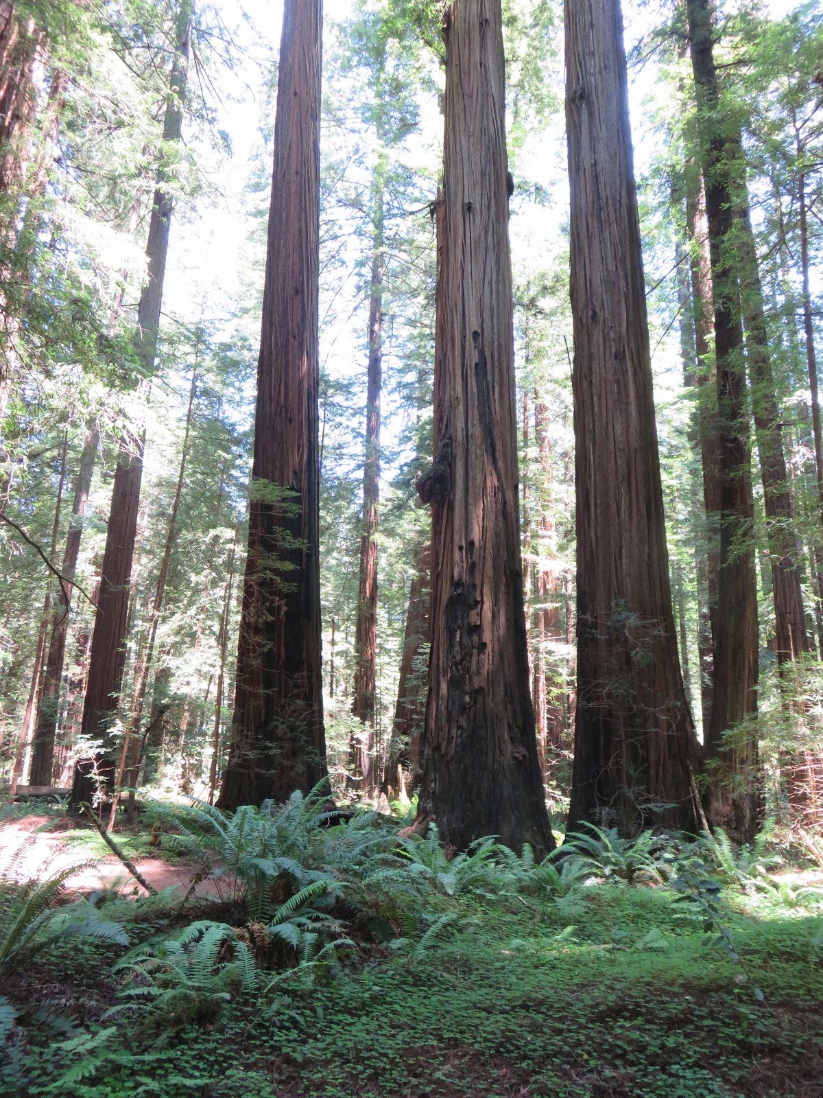 Coastal redwoods which differ from the giant sequoias south near Yosemite National Park have been called “eternal” and are the tallest trees in the world. Their scientific name, sempervirens, means “ever-living”. They grow best in areas with heavy winter rains, moderate temperatures, under 2,000 ft in elevation, and climates that create banks of daily fog in the summers. They actually absorbed moisture from the fog through their leaves and needles accounting for 40% of their water intake.